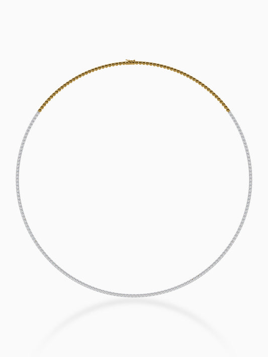Set in 18kt yellow gold, featuring a captivating mix diamond design (22.55ct, EF-VVS ) adorned with an array of brilliantly cut mix shape diamonds, the wanderlust Diamond necklace is the pinnacle of timeless classics with a modern touch. The meticulous placement of the diamonds creating a delicate edge along the curves of your neck adding that touch of modernism to your day.- Choosing a selection results in a full page refresh.